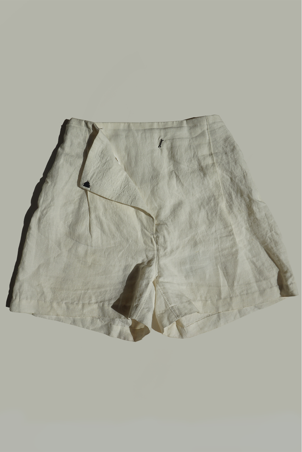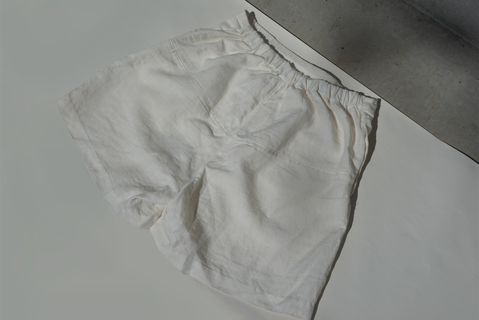 Custom made Japanese linen shorts with pleats, undyed.